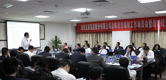 2012年4月12日上午,湖南发展集团股份有限公司战略规划编制工作动员会暨战略规划培训会在总部举行,公司总部全体员工、株洲航电分公司经营班子及各部门副主任以上人员参加了会议。负责此次战略规划编制工作的正略钧策管理咨询团队出席会议,会议由公司总裁刘健先生主持。
