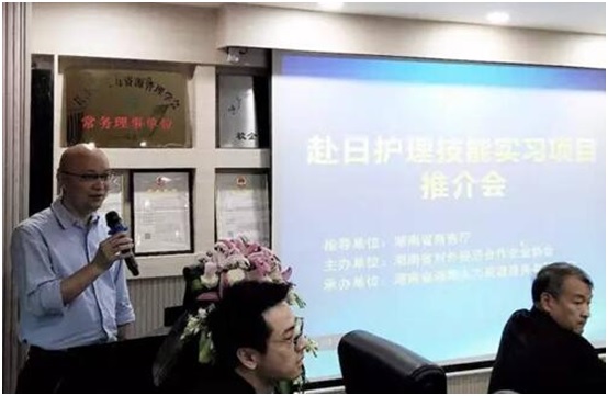 2017年4月25日下午,由湖南省商务厅指导、湖南省对外经济合作协会主办、湖南省湘辉人力资源服务有限公司承办的“赴日护理技能实习项目推介会”在长沙举行。国家卫计委能力建设和继续教育中心社会合作部主任王永进、湖南省商务厅对外合作处长彭争、天心区副区长许波、日本医疗看护合作社理事长栗原幸太郎、湖南发展集团股份有限公司副总裁兼湖南发展侨亚养老产业有限公司董事长张建湘等出席了会议。