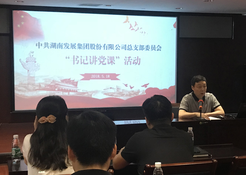 2018年5月18日下午,根据湖南省国资委系统“千名书记讲党课”活动部署,公司党总支开展了以“学习贯彻习近平新时代中国特色社会主义思想和党的十九大精神”为主题的支部书记集中讲党课活动。党总支书记、总部直属三个支部及湖南发展侨亚党支部书记分别为大家上了一节党课。本次党课活动由公司党总支委员、监事会主席黄志丹主持,总部及湖南发展侨亚30余名党员参加了学习。